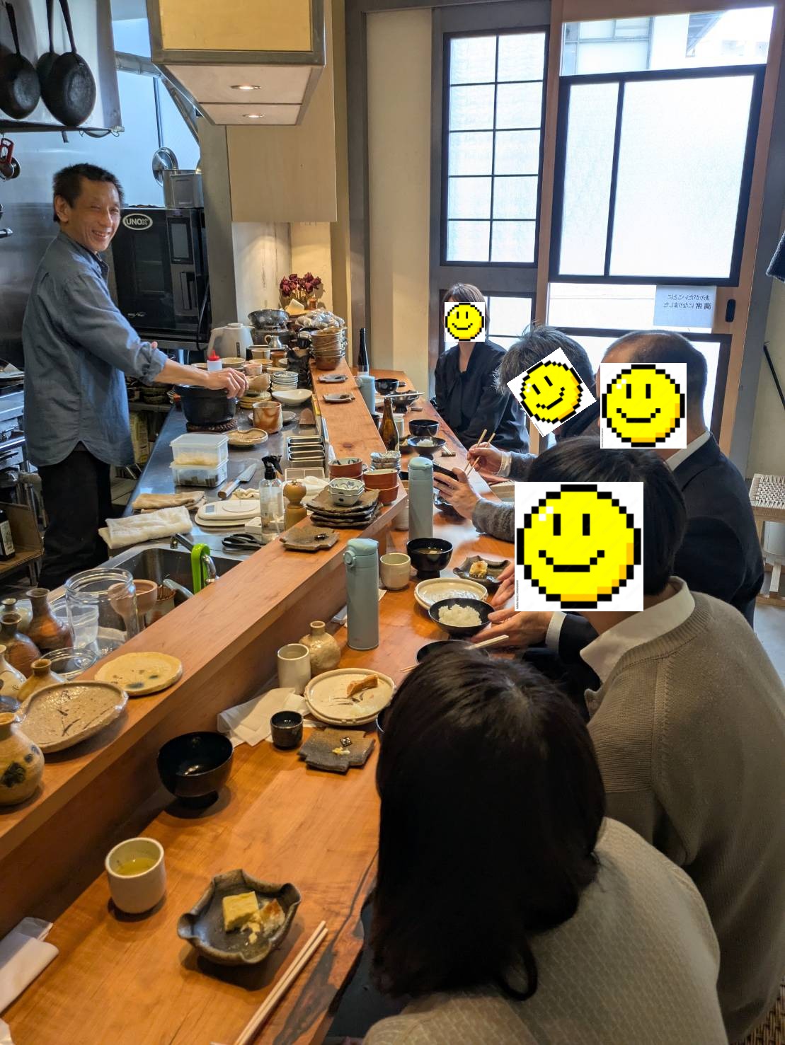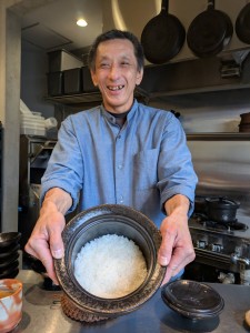 目の前で土鍋ご飯が炊けていく様子が見られるので、より美味しく感じ、店主の佐藤さんとの会話も楽しめるアットホームなカウンター席でした。(全7席)